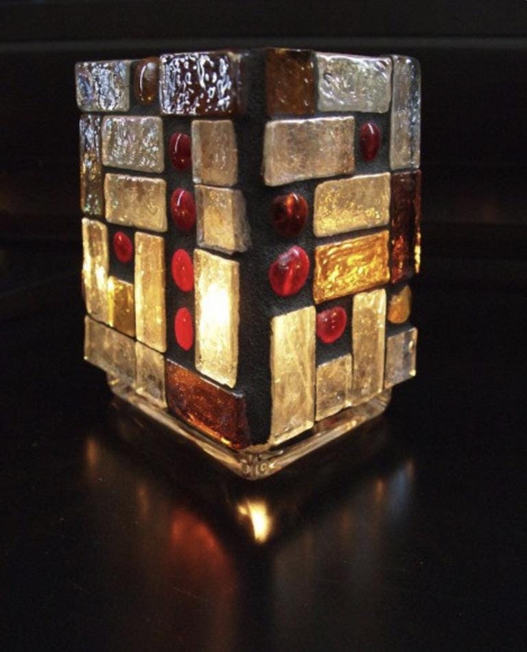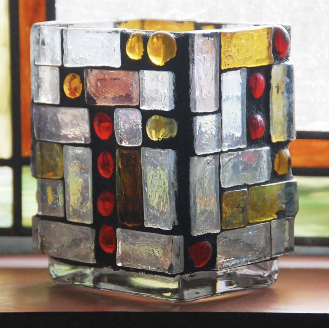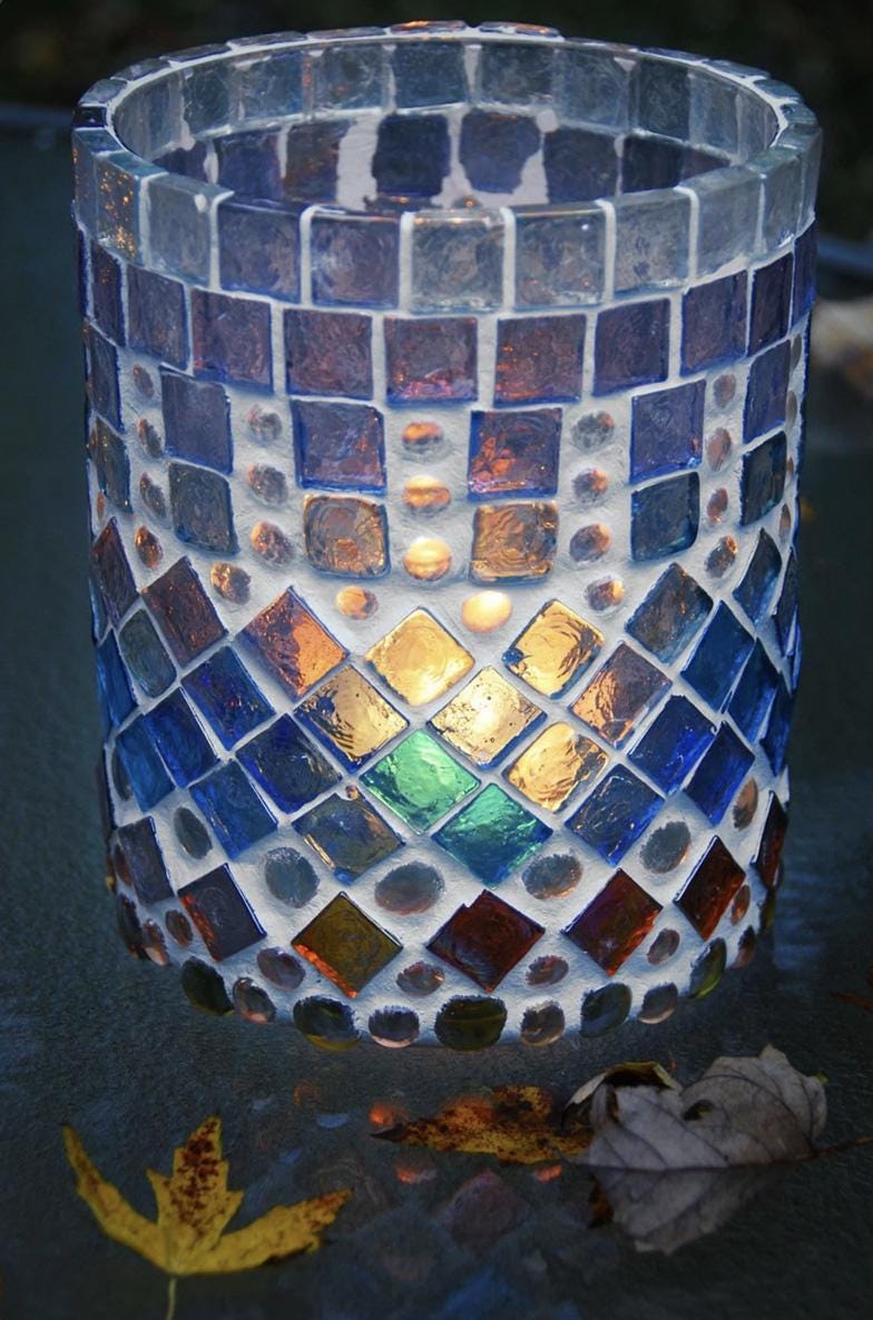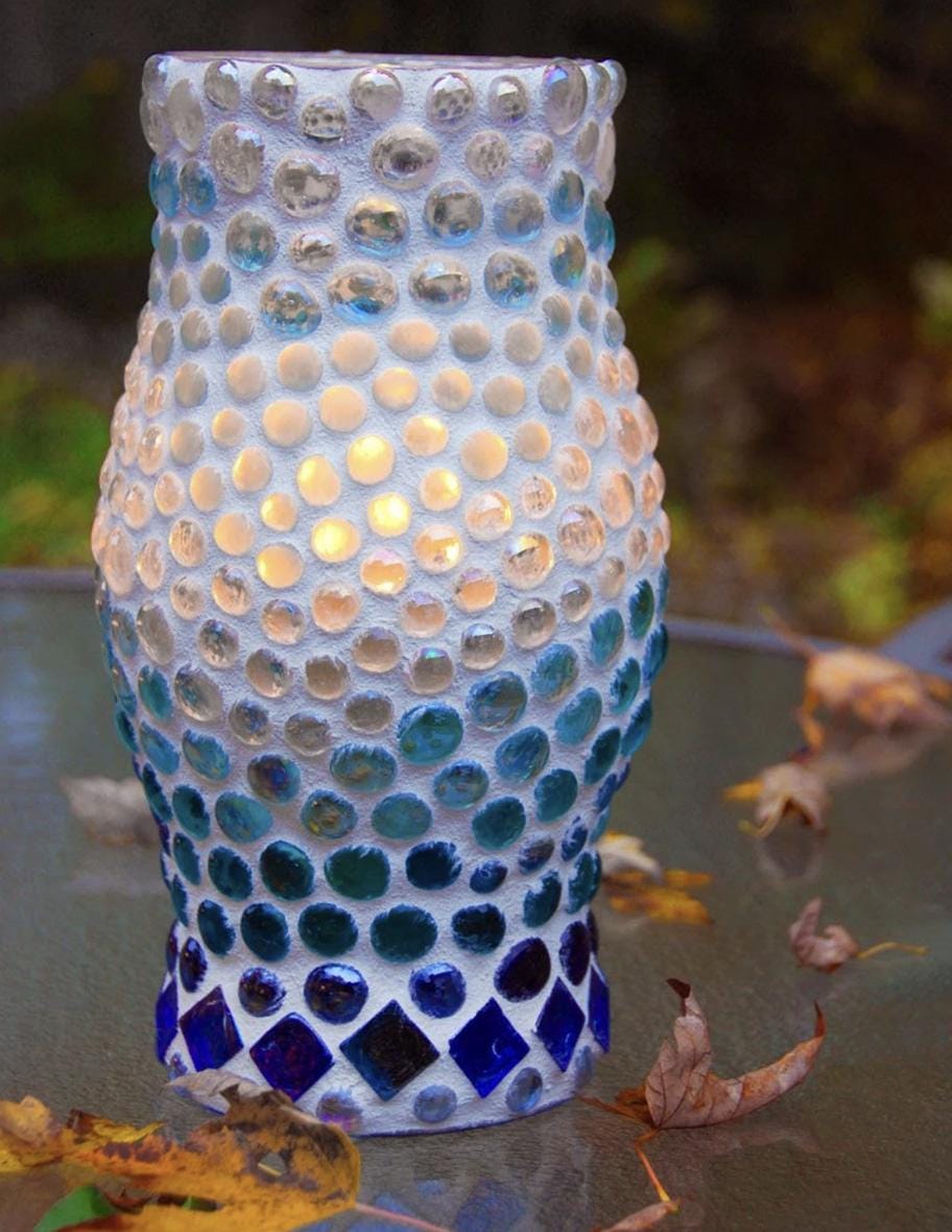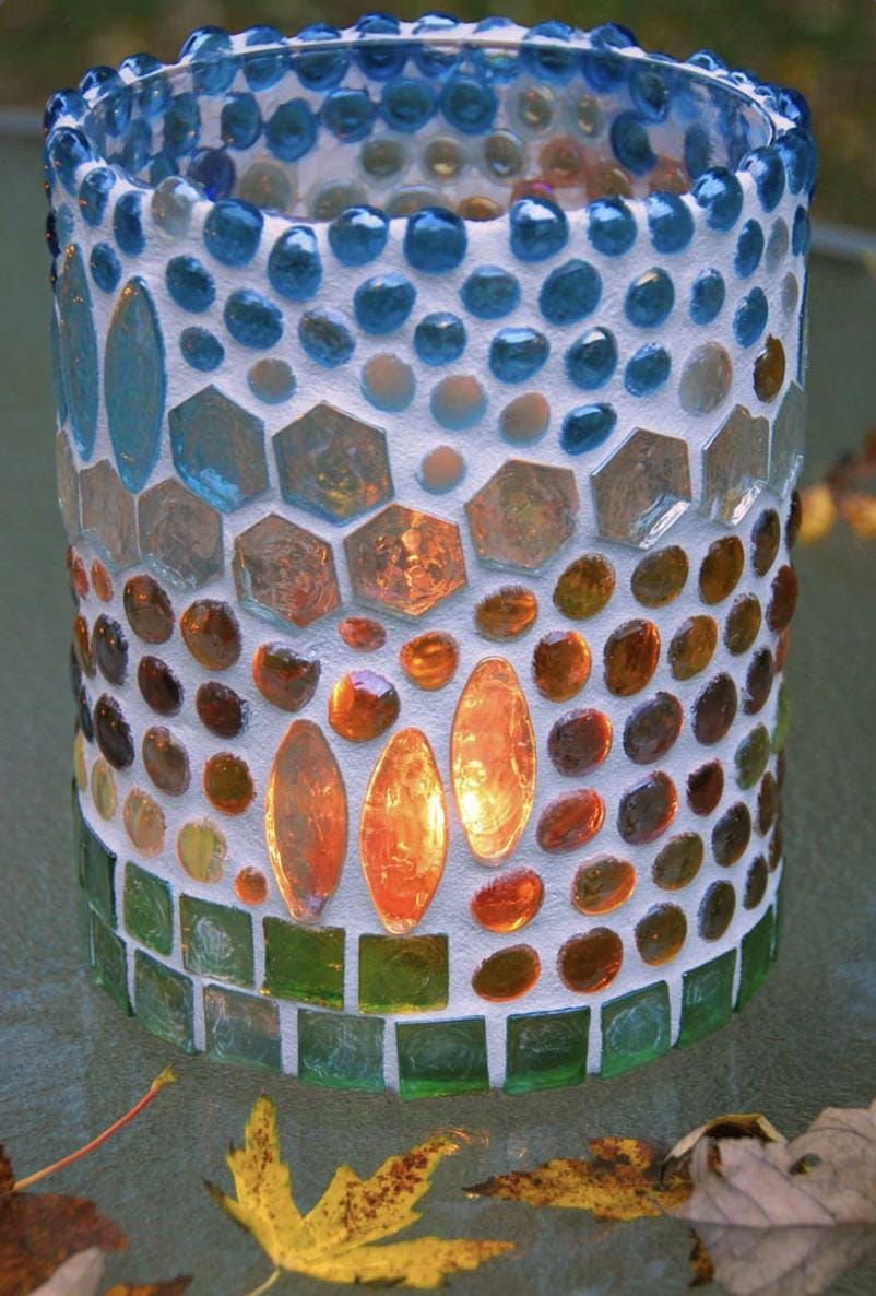 Chunky Stained Glass and Glass Pebbles Mosaic Candle Lantern - Luminaria