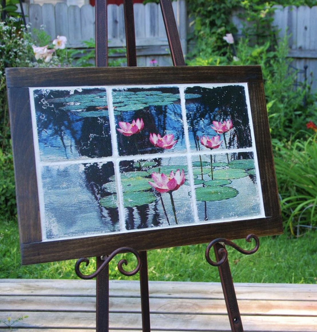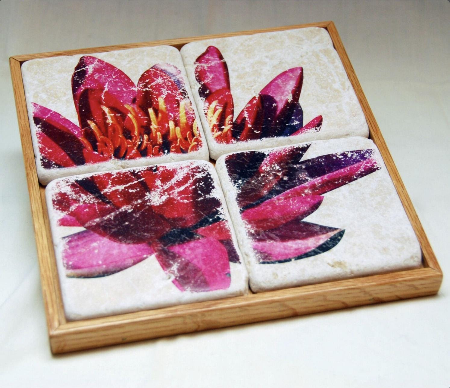 Marble Tile Coaster Set - Waterlily