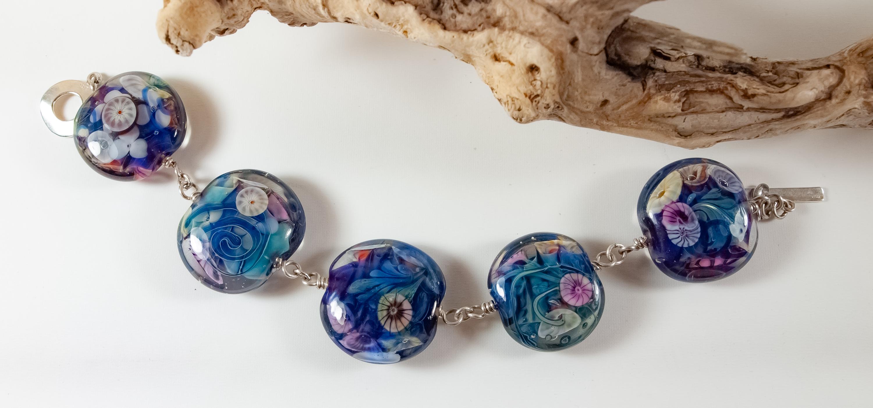 Lampwork Glass Bead Bracelet - Waterworld