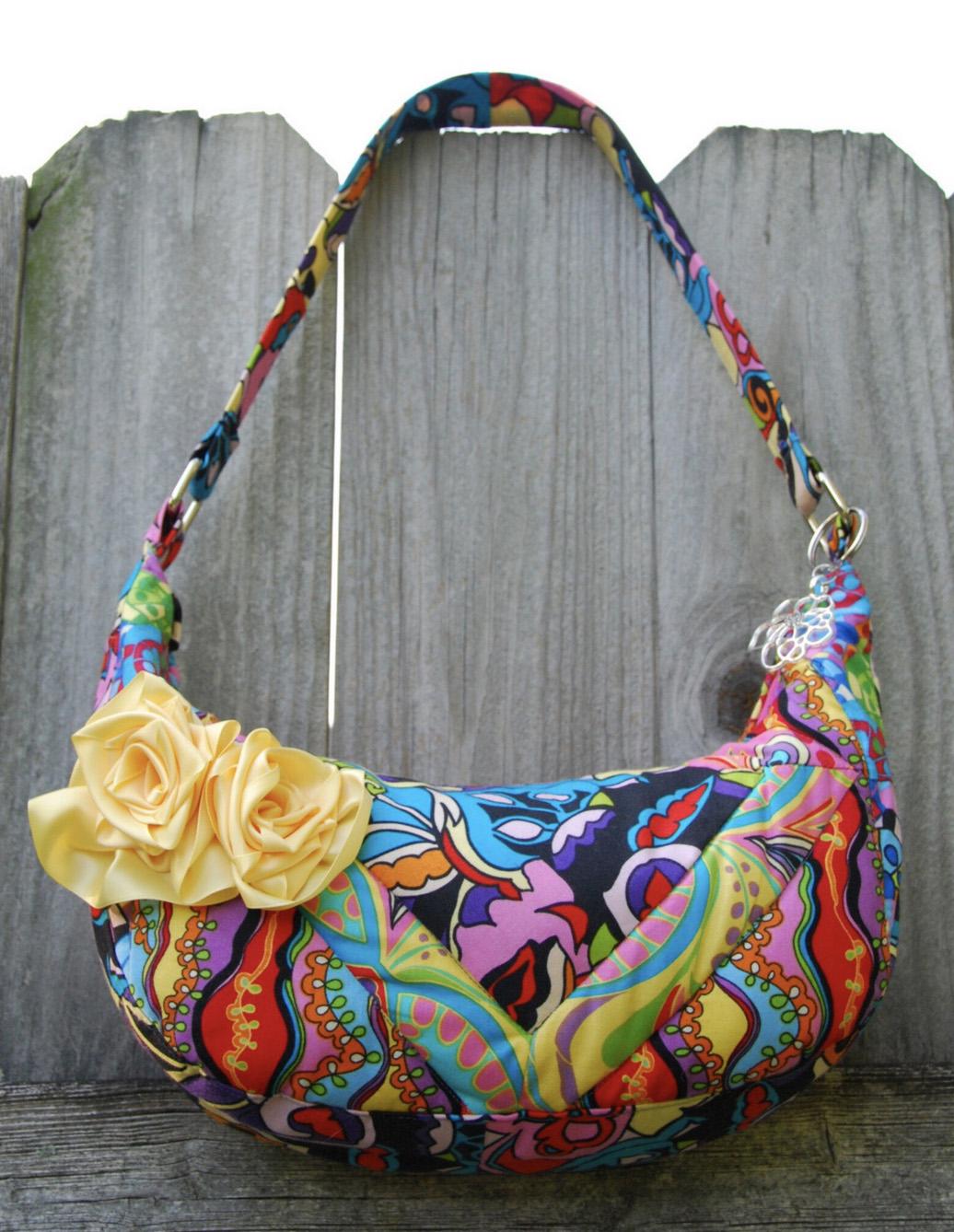 Quilted Bag with Ribbon Flower