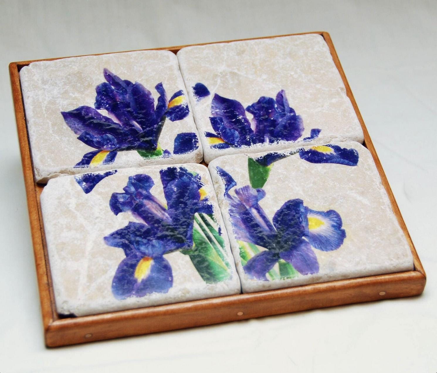 Marble Tile Coaster Set - Iris