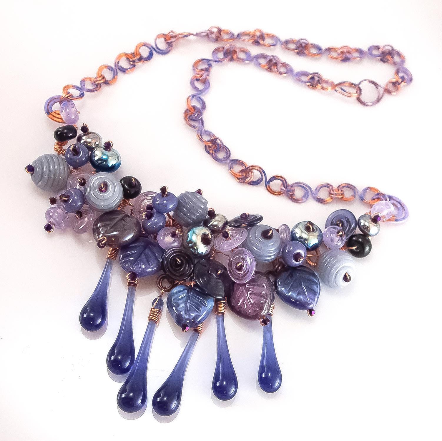 Lampwork Glass and Copper Necklace - Purple Rain