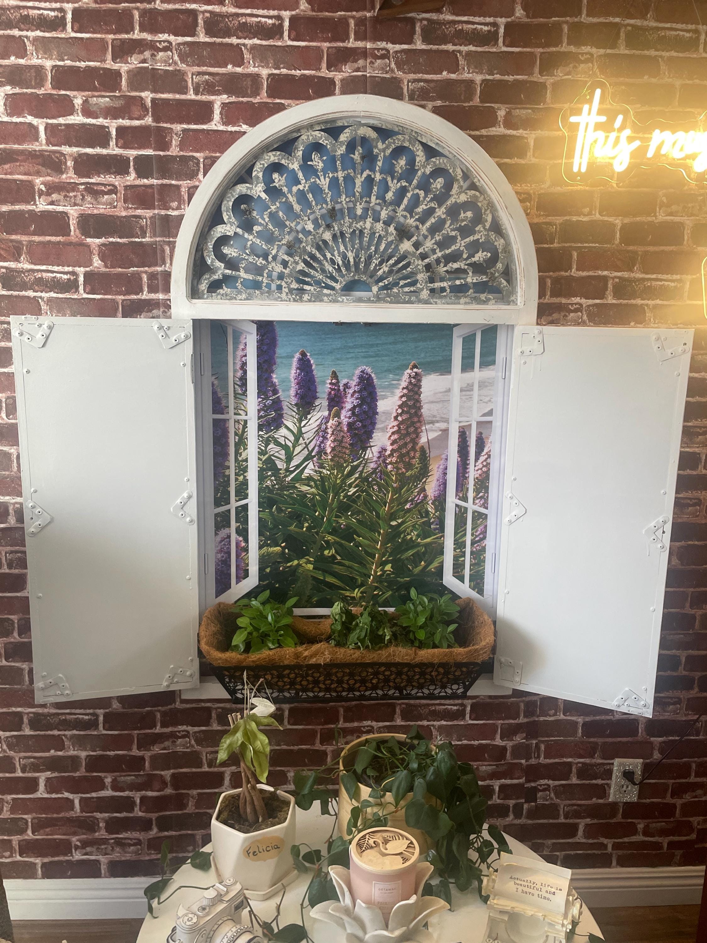 Faux window frame, photo wall decal with an image of a window frame and Stinson Beach beyond.