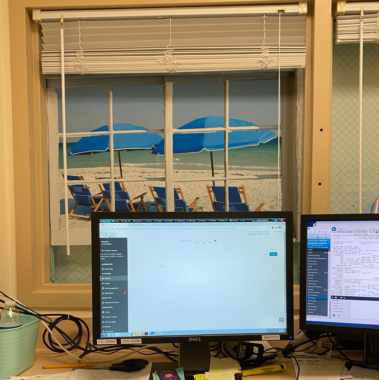 Faux window frame, photo wall decal with an image of a window frame and Florida emerald coast beyond.
