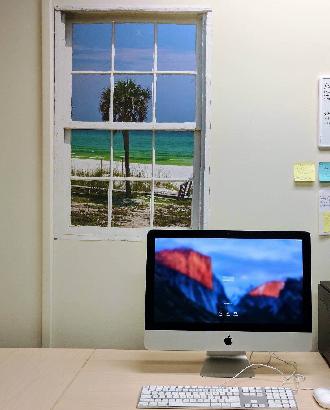 24x36 wall decal with an image of a window frame and Florida-Destin beach beyond.